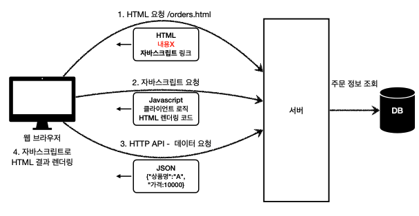 주로 동적인 화면에 사요으 웹 화면을 마치 앱처럼 필요한 부분부분 변경할 수 있음