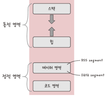 예시) stack에서 pointer 변수를 할당하면 pointer가 가리키는 heap영역의 임의의 공간부터 원하는 크기만큼 할당해 사용한다.