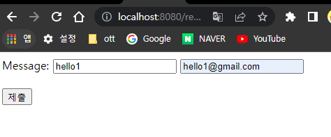 - Form 을 통해 msg와 email이라는 이름을 가진 text를 보내는 방법 (“/receive” url로 요청을 보낸다.)